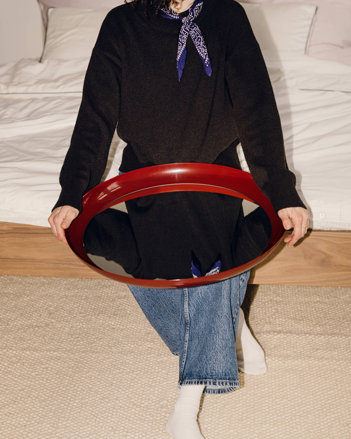 Wir stellen vor: Allo, ein eleganter Wandspiegel mit einem originellen, stromlinienförmigen Rahmen, der Ihrem Badezimmer, Flur oder Wohnzimmer einen raffinierten Touch verleiht. Ob für einen schnellen Blick vor dem Verlassen des Hauses oder als stilvolles Akzentstück, die schlanke und langlebige Konstruktion von Allo bietet praktische Funktionalität und dient als atemberaubendes dekoratives Element.