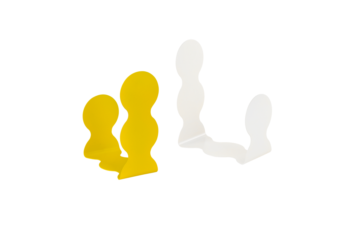 Fala ist eine moderne Buchstütze aus Stahl, die Büchern, Zeitschriften und Alben einen stabilen Halt bietet. Aus pulverbeschichtetem Stahl gefertigt, ist sie langlebig, stabil und widerstandsfähig gegen tägliche Abnutzung. Mit ihrer dynamischen Form und den kräftigen Farben setzt diese dekorative Buchstütze einen verspielten Akzent in Regalen, auf Schreibtischen oder Sideboards. Ordne deine liebsten Hardcover und Taschenbücher darin und verschönere dein Interieur mit einem funktionalen Designobjekt.