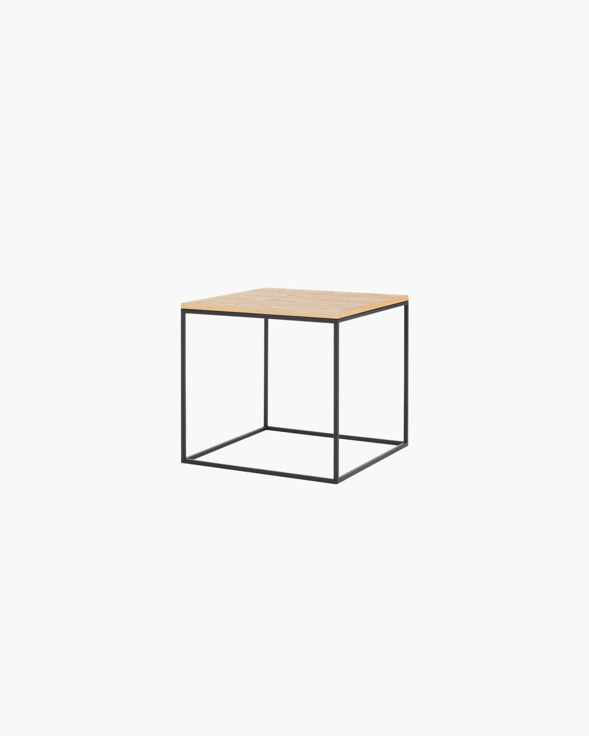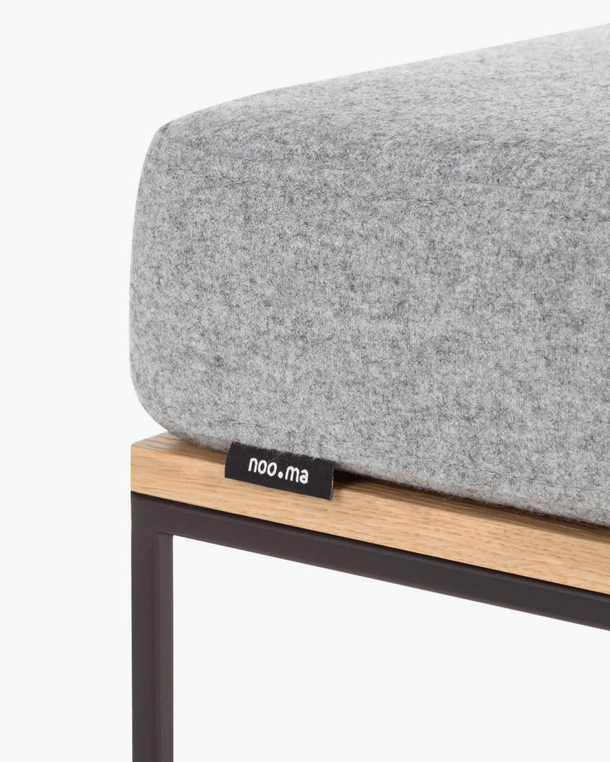 Darf ich vorstellen: Feo, ein minimalistischer Einrichtungsgegenstand. Dieser quadratische, moderne Hocker ist aus Eichenfurnier und robustem Metall gefertigt. Er wird mit einem abnehmbaren grauen Wollkissen geliefert, dank dem der Hocker auch als praktischer Beistelltisch oder stilvoller Nachttisch verwendet werden kann. Seine geringe Größe macht ihn zu einer großartigen Ergänzung für kleine Innenräume.