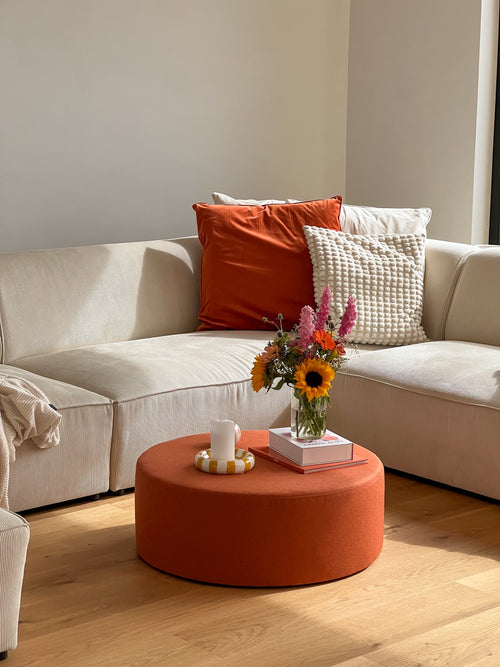 Folk Pouf ist ein minimalistisches und dennoch komfortables Akzentmöbel, das aus hochwertigen Stoffen in einer Vielzahl von Farben, Texturen und Ausführungen hergestellt wird. Durchdacht proportioniert und in drei Größen erhältlich, passt er sich unterschiedlichen räumlichen Bedürfnissen an und eignet sich gut als praktische Ottomane, Fußbank oder moderner Beistelltisch. Seine schlichte Form macht ihn zu einer vielseitigen Ergänzung für Innenräume jeden Stils.