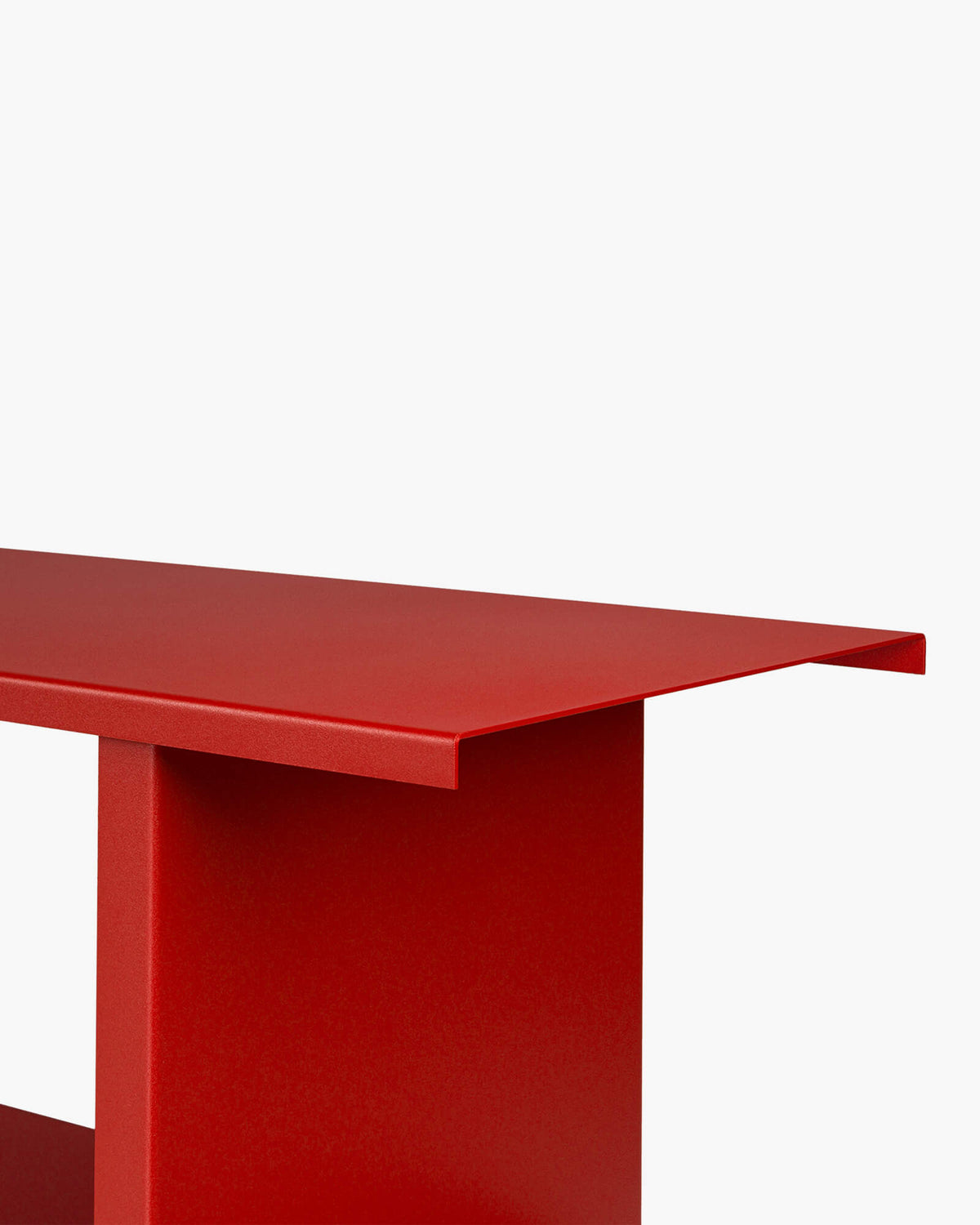 Lerne Hes kennen - ein klassisches 5-stufiges Regal, ein geeignetes Bücherregal oder eine praktische Aufbewahrung für deine Pflanzen und Dekoartikel. Die schlichte, gebogene Stahlkonstruktion mit hervorstehenden Elementen bietet viel Stauraum und ist ein dezenter Wink an Minimalismus-Liebhaber. Erhältlich in klassischem Grau und frischem Rot, hat Hes das Zeug dazu, zu einem herausragenden Blickfang in deinem Wohnzimmer oder Home Office zu werden.