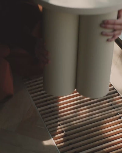 Wir stellen Oly vor - einen runden Wohnzimmerhocker mit verschiedenen Einsatzmöglichkeiten. Er kann ein funktionaler und kleiner Beistelltisch, eine leicht zu transportierende zusätzliche Sitzgelegenheit, ein moderner Nachttisch oder sogar ein praktischer Pflanzenständer aus Furnier und Stahl sein. Sein minimalistisches Design, das auf einfachen Formen und robusten Materialien basiert, wertet dein Interieur mühelos auf, unabhängig von deinem Stil.