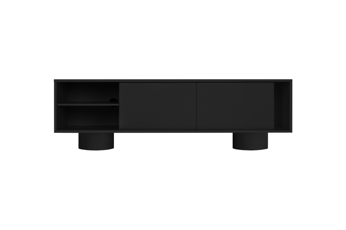 Voici Taro - un meuble TV spacieux qui offre un espace de rangement pour vos appareils multimédia, vos disques et autres objets. La forme classique de Taro est dynamisée par des pieds arrondis et une porte coulissante, ajoutant un aspect raffiné à divers environnements, des salons aux bureaux.