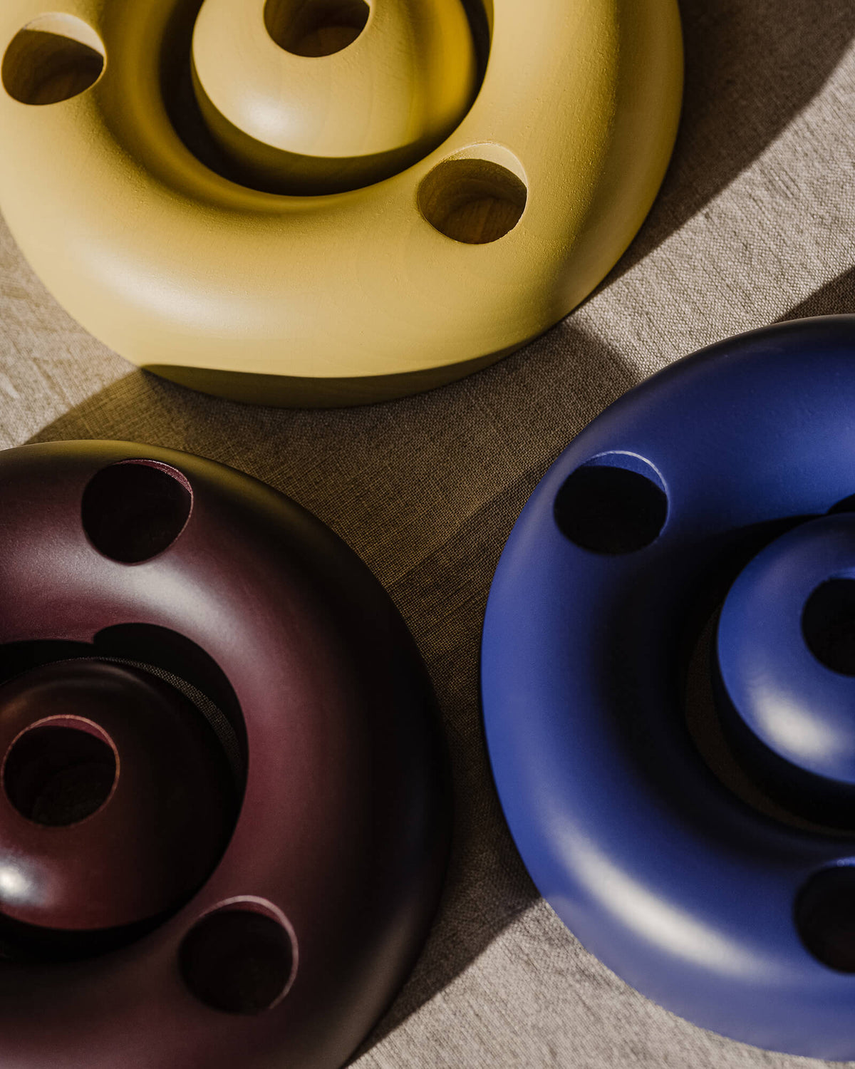 Voici Lums – une gamme de bougeoirs en bois, prêts à relever le défi d’égayer votre maison. Disponibles en deux tailles et formes, ils sont le compagnon idéal pour une bougie. La surface profilée recouverte de laque mate reflète élégamment la lumière des bougies, imprégnant instantanément la pièce d'une ambiance chaleureuse.
