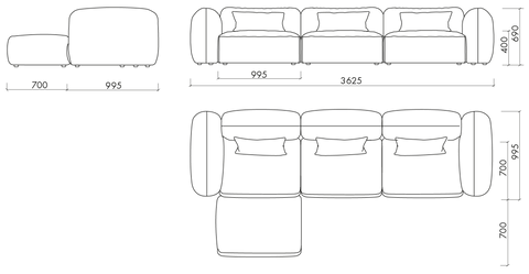 Sofa występuje w 5 wariantach, aby dopasować się do twoich potrzeb. Wybierz opcję 3-osobową albo 4-osobową, 3- lub 4-osobowy narożnik lub wersję z podnóżkiem.