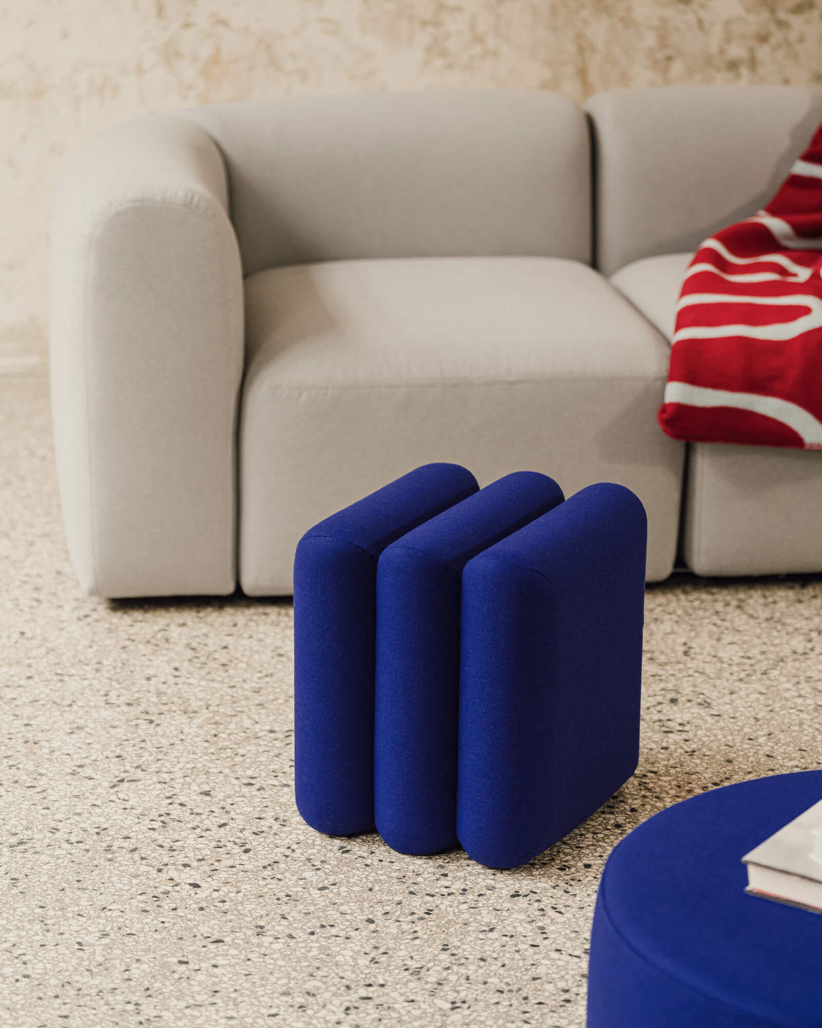 Oto Radd – miękki stołek, który urzeka nietypową opływową formą. Dzięki tapicerowanemu wykończeniu charakteryzuje się miękkością i lekkością – zarówno wizualnie, jak i w dotyku. Dostępny w odcieniach beżu i intensywnego niebieskiego puf odnajdzie się w każdym wnętrzu, pełniąc wiele różnych funkcji. Radd posłuży jako dodatkowe miejsce do siedzenia, podnóżek albo po prostu oryginalny element dekoracyjny.