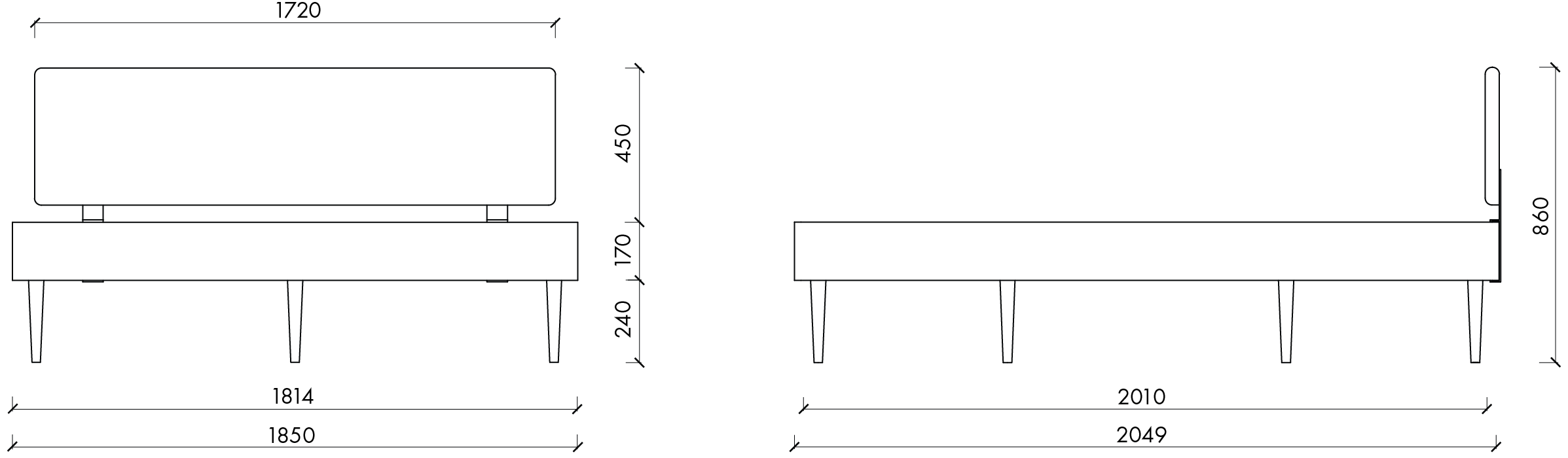 Introducing Streiko - comfortable & precisely crafted bed, tailored to your dreamy interior. Carefully balanced proportions of Streiko provide inspiring aesthetics to different kinds of bedrooms. Precisely rounded legs, brilliant quality and incredibly minimal shape of the bed results in durable and long-lasting use, elegant visual appeal and exceptional daily comfort. Matress not included. Headboard and slats optional.