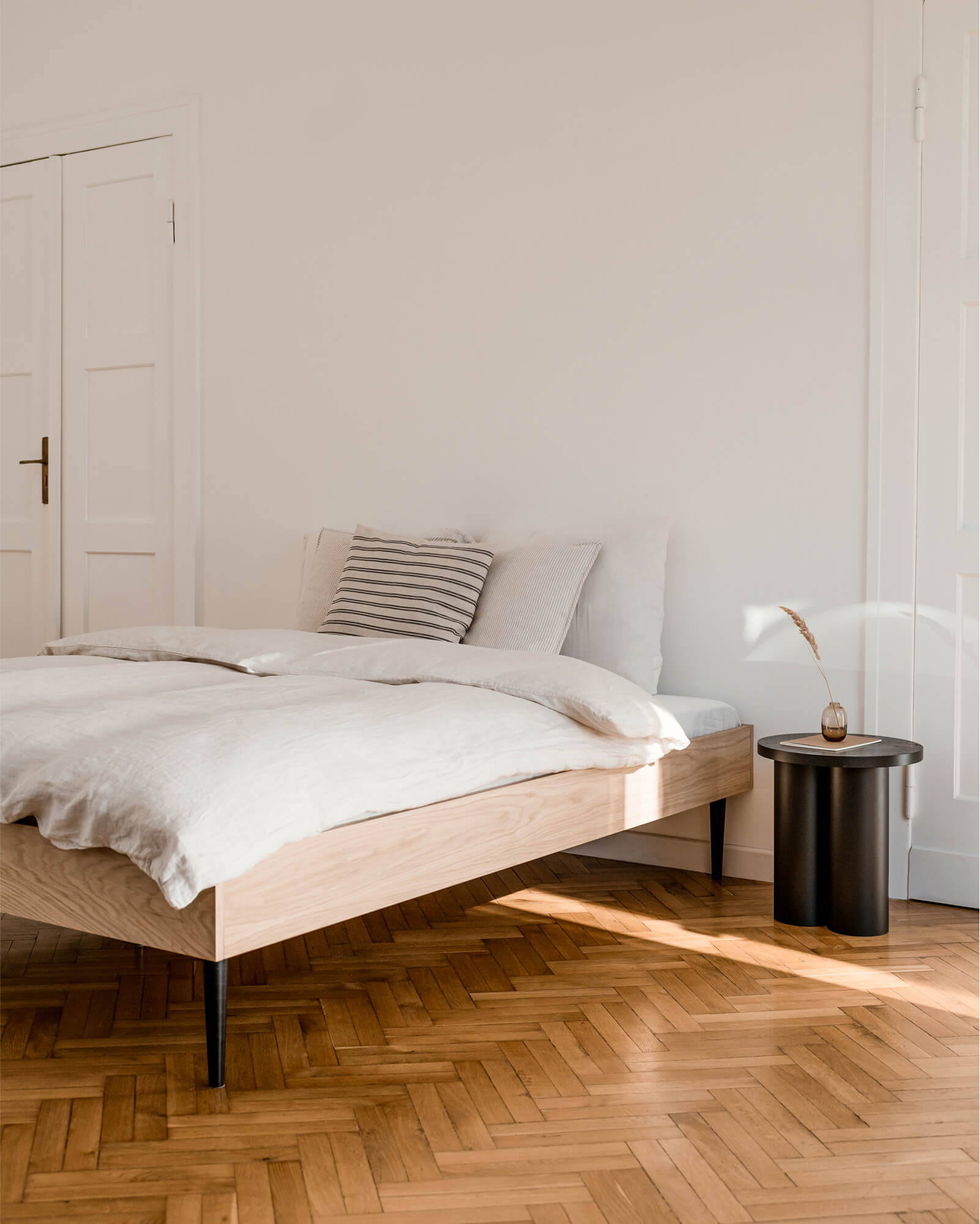 Made of brilliant quality materials, minimal Streiko bed and Tu bedside tables create a matching set for your dreamy interior. Light and easy to carry Tu nightstands and elegant, precisely crafted Streiko bed easily blend into different kinds of interiors and provide you with an inspiring aesthetics by day and an exceptional comfort by night.